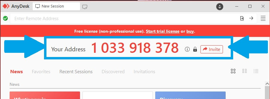 Find your Anydesk address number by launching the Anydesk.exe download from the "downloads" folder and finding your address number at the top of the program.